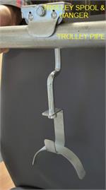 Sold as an assembled set. Railex hose-trolley spool attached to our hose hanger/saddle set.